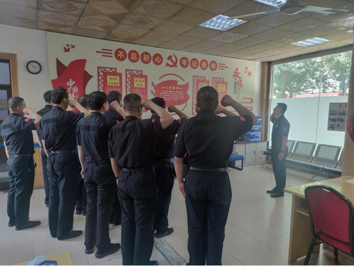 “我志愿加入中國共產(chǎn)黨,擁護黨的綱領(lǐng),遵守黨的章程,履行黨員義務(wù),執(zhí)行黨的決定......”在鮮紅的黨旗下,金融護衛(wèi)中心工行大隊全體黨員莊嚴地舉起右手,握拳宣誓,每一句都是全新的心靈洗禮,憶初心,銘記莊嚴的承諾,牢記共產(chǎn)黨的政治責(zé)任、工作擔(dān)當(dāng)和光榮使命,以實際行動恪守對黨的忠誠,以積極進取的心態(tài)踐行入黨誓詞,為譜寫保安公司高質(zhì)量發(fā)展新篇章作出積極貢獻。